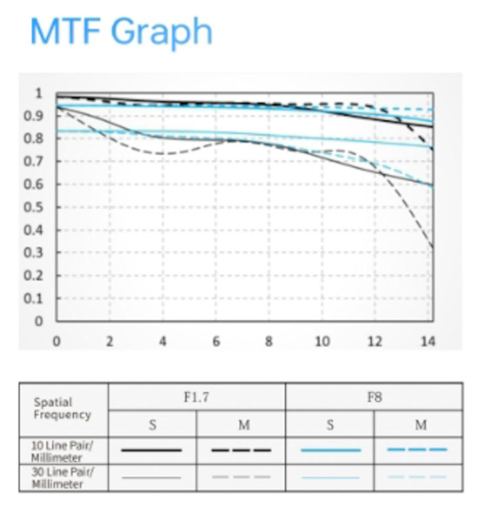 - Aperture: from f1.7 to f16, 9 aperture blades